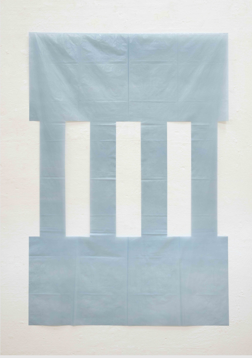 A partire dagli anni Ottanta, i cicli Quantità libere, Polietileni, Banchise ed Ekleipsis segnano un passaggio decisivo nella sua ricerca. L’adozione del foglio di polietilene come medium privilegiato trasforma la superficie pittorica in una membrana diafana, versatile ed eterea: non più semplice supporto, ma campo operativo in cui la pittura si ridefinisce come evento, processo e relazione nello spazio. Tagliato, piegato, stratificato, sagomato o lasciato floscio, il polietilene diventa opera autonoma, affrontando a un nuovo livello il problema della visione e del suo limite, del recto e verso della pittura, della sua estensione ambientale.